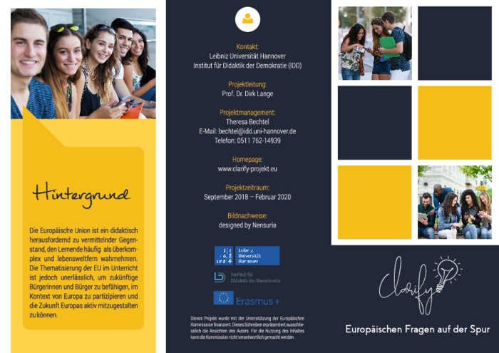 Lehrkräfte erhalten darüber hinaus ein unterrichtsbegleitendes Handbuch, das unter anderem eine Anleitung zu Gelingensbedingungen des Unterrichts und Bedienbarkeit der App sowie Hintergrundinformationen zum Gegenstand der EU enthält.